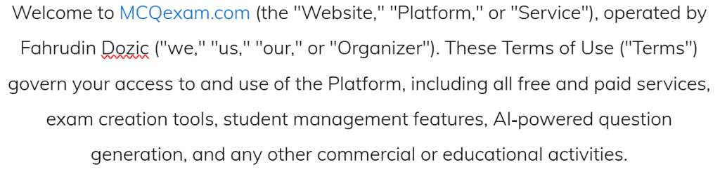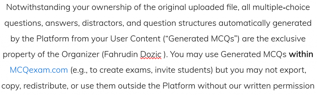 - Users acknowledge that these tools are provided “as-is,” and ShareMCQ.com does not guarantee the absolute accuracy or effectiveness of any exams created using the Platform.