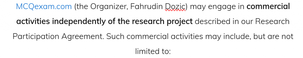 We will always provide clear notice and choice before any material change that would transfer your personal data from the research track to a commercial track. If you have questions about whether a specific activity is research or commercial, contact us at privacy@mcqexam.com..