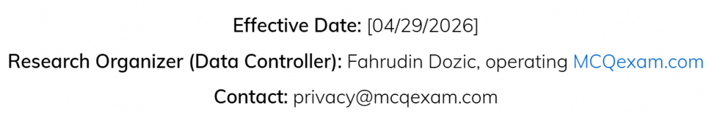 By using MCQexam.com, you acknowledge that you have read and understood this Privacy Policy.